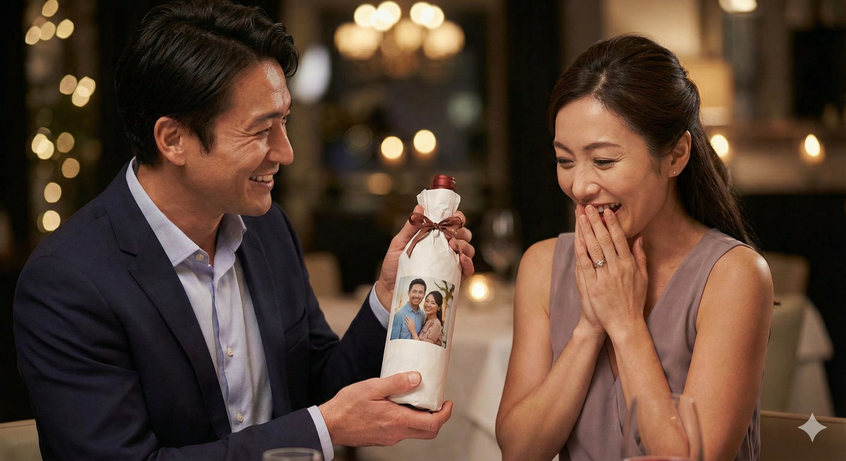 - 二人の思い出の写真で:デートや旅行の時の写真を使えば、二人だけの記念ボトルに。